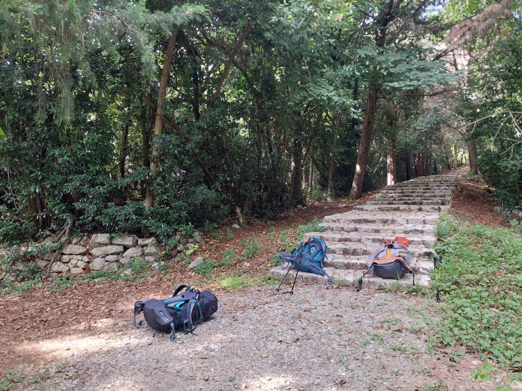 Dotaknile so se nas vojne zgodbe. Žal neuki nismo poznali pomena Are pacis mundi, a vseeno smo spokojno in s spoštovanjem odšli naprej po gozdni stezi, na katero nas je usmeril modro-beli znak Camina Celeste, in pospremil prometni znak »prepovedano za kolesarje«. Hvalevredna prometna usmeritev, ki jo pohodniki in romarji vse bolj pogrešamo po odmaknjenih gozdnih poteh.