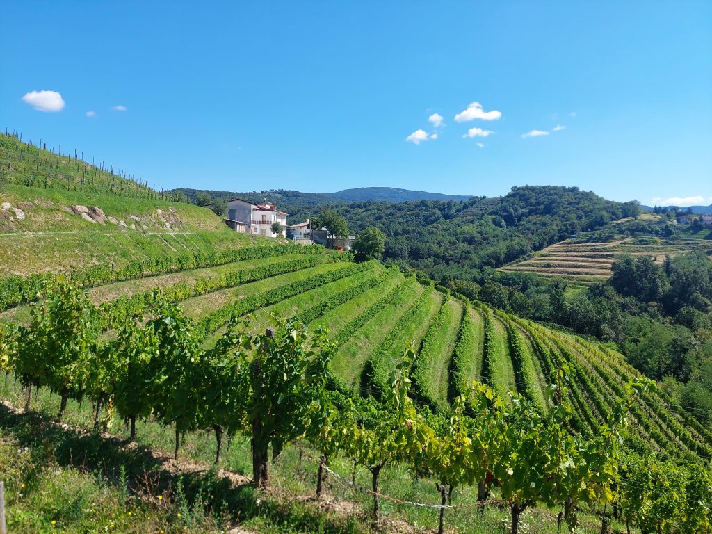 »Gremo, naprej, pod oblake, brez mej,« sem radostno zapel, da bi lažje začeli gristi klanec na Monte Quarin, svetovno znan v kolesarskem svetu. Pot pod Krminsko goro, na kateri so stojijo ostanki poznoantične utrdbe in romarska cerkev Marije Pomočnice, zgrajene leta 1636, seje postavila po konci. Klanec je dal vetra vsem trem romarjem tokratne nebeške izbire. Pohodniške majice so bile premočene, znoj je v curku tekel po zadnjici. Asfaltirana cesta je terjala svoj davek, pred nami je bila uhojena gozdna pot in spust v dolino pod vinske terase.