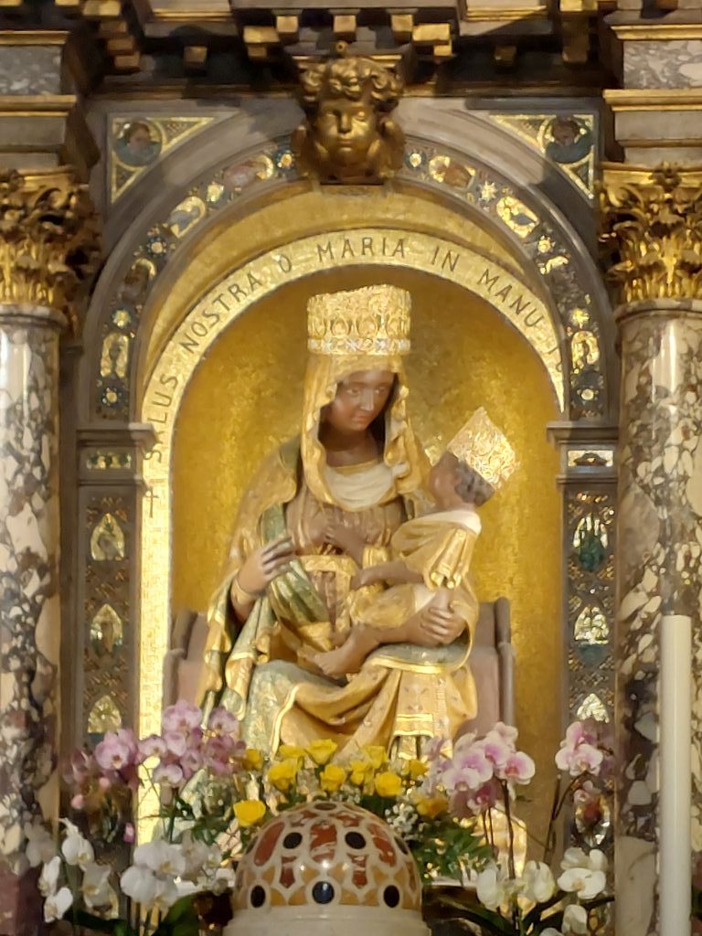 Globoko zatopljenega me je ujela znana molitev Ave marija, ali Zdrava Marija, in to prav v Marijinem svetišču, katere podoba v oltarju cerkve na Stari gori je tako lepa, da smo jo slovenski romarji poimenovali kar Lepa Marija, pa tudi Živa Marija. Ob koncu večerne maše sem pokleknil pred oltarjem in si jo ogledal. Po cerkvi sem iskal tudi Starogorski rokopis, ki je nastal v letih 1492−1498. Njegov avtor je Lorenzo da Mernicco. Velja za enega najstarejših dokumentov v slovenskem jeziku, ki je nastal pred njegovo širšo standardizacijo. Original je bil del knjige bratovščine Confraternita di Santa Maria del Monte. Latinsko besedilo s seboj prinaša slovenski vzklik: »Živa Marija!« Zanimivo je, da ima Starogorski rokopis enako vsebino kot Celovški: Oče naš (pro Vater Nostro), Zdrava Marija (Ave Maria) in Apostolsko vero (Credo);