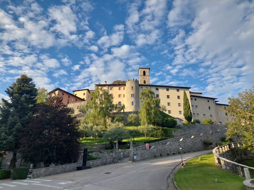 Uspel sem ga le še vprašati glede plačila, pa je rekel: »Če lahko, pri maši v pušico vrzite. Mir in dobro!« in je odšel. Nikoli več ga nisem srečal, a njegova dobrota, preprostost in prostovoljno uboštvo brez osebne in skupne lastnine, se me je globoko dotaknila. Poklical sem Remka in Papka ter jima dodelil vsakemu svojo sobo. Prosil sem ju, naj prezračita in pometeta sobe, medtem, ko grem sam k maši. Skupaj smo se dogovorili, kolikšen naj bo naš prispevek. Liturgija je potekala v italijanskem jeziku, sam sem ji sledil po slovenki maši. V tišini sem sedel v zadnjo klop. Spet sem premišljeval o sebi, svojih pohodih in romanjih, kaj me žene, in kakšen smisel daje. Prvič sem sedel v klopi kot stari ata, in začel sem se zavedati, kako kratek je naš tuzemski vek, kako minljivo je življenje, ki prinaša vzpone in padce. Kako neumno se pehamo za materialnimi dobrinami, na koncu pa odidemo na oni svet v beli srajci brez žepov. Srečen sem, da ima sina in hčerko in prvega vnuka, življenje gre naprej. Sam postajam vse bolj bežni opazovalec in odmirajoči svet. A dokler bom hodil, vem, da mi zdravje služi, kar edino šteje. Pa še srečen sem s tistimi petimi kilogrami na ramenih, več dejansko ne potrebujem. Kar je pravi obliž na brazgotine potrošniške miselnosti. Od materialnega k duhovnem je moj moto in iz generacije v generacijo misel, ki me krepi.